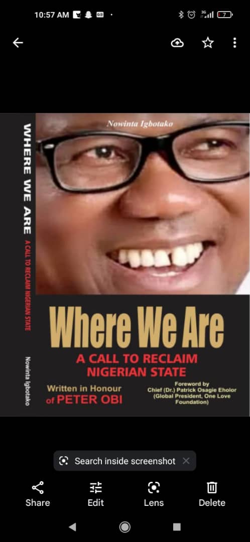 about Peter Obi alone, but as a perfect avenue to reclaim the country for