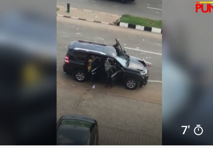 In a video that has gone viral on social media, some of the thugs are seen jumping into a black Prado driven by a man in suit on Adetokunbo Ademola Crescent Wuse 2.