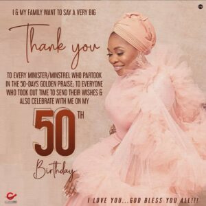 Popular gospel singer, Tope Alabi, has expressed how awestruck she was after the General Overseer of Living Faith Ministries aka Winners Chapel International, Bishop David Oyedepo, stormed her Iju home in Lagos for her 50th birthday celebration.