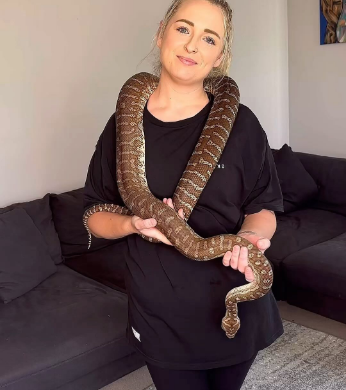 She said in a video shared online: “I want to introduce you to Betty. She’s my centralian carpet python….She’s about 8-foot-long. I’ve never had an issue with her biting or anything until today.”