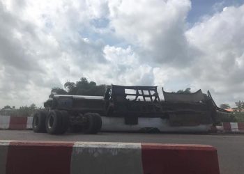 Date: Tuesday 23rd May, 2017 A trailer conveying a container fell at motorways bus stop at about 5:16am, blocking the...