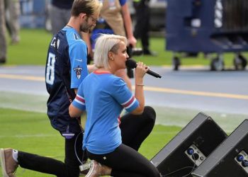 A white US national anthem singer has received death threats and labeled “un-American” after kneeling at a football game earlier...