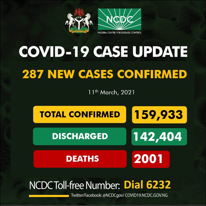287 new cases of #COVID19Nigeria;