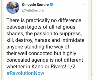 There is practically no difference between bigots of all religious shades, the passion to suppress, kill, destroy, harass and intimidate anyone standing the way of their well concocted but highly concealed agenda is not different whether in Kano or Rivers!