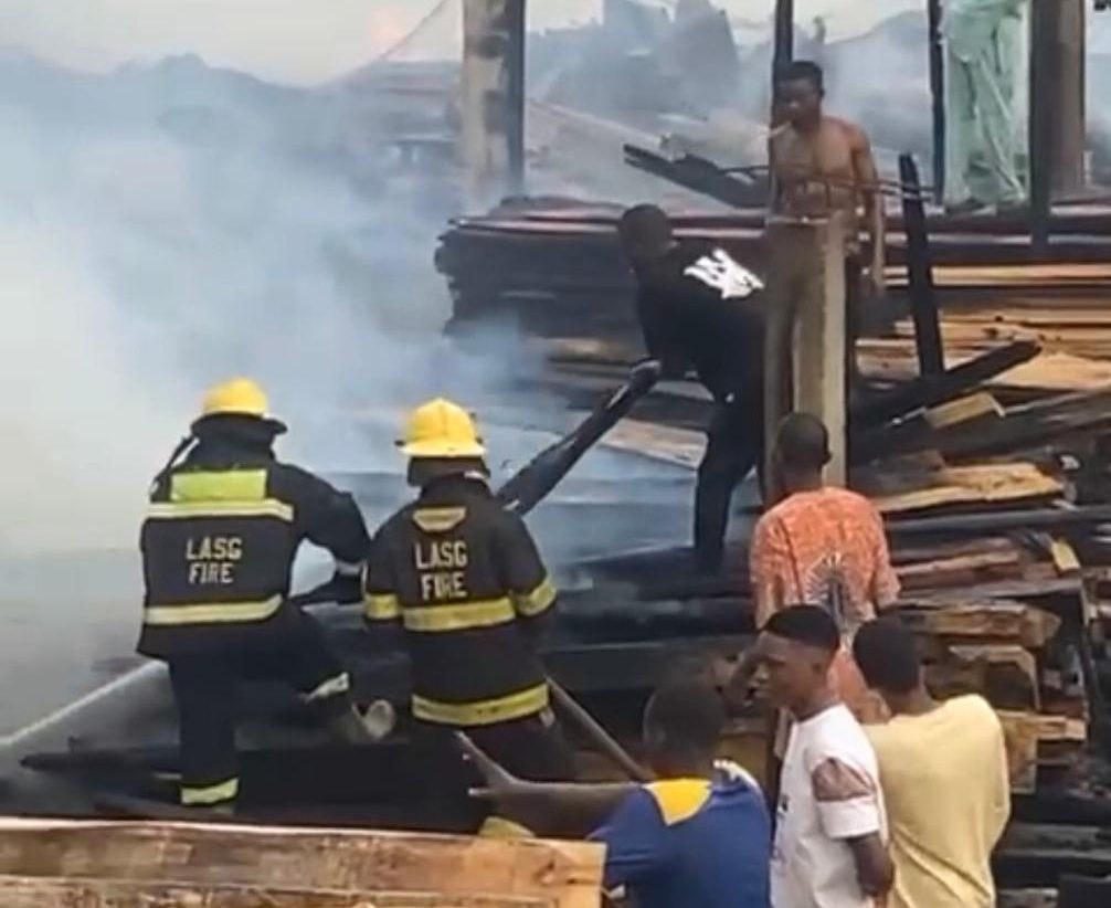 A Sawmill at the Awori bus stop in the Abule Egba area of Lagos State has reportedly caught fire.