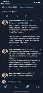 He took to his twitter handle to mourn the sudden exit of his brother,and other deaths which include a pool driver,Toyin Ogunbamwo,killed by a hit and run driver,Late Pastor Ibidun Ighodalo, and Senator Bayo Osinowo.
