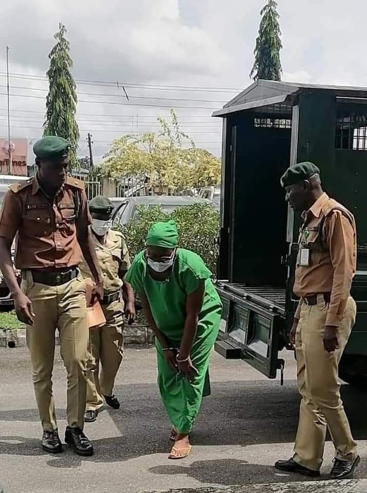 Although the judge granted her bail pending when the case will be heard her bail alone condition is N5 million plus landed property which she could not come up with immediately hence her transfer to Okaka prison.