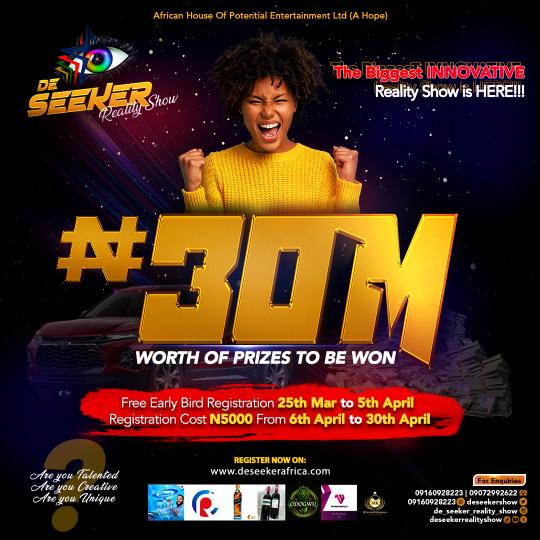 Applicants are advised to visit the official website of the show, www.deseekerafrica.com for registration.