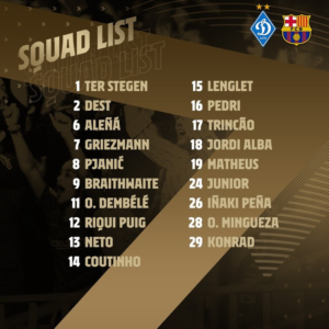Barcelona have left Lionel Messi out of their 19-man squad to face Dynamo Kiev in the Champions League on Tuesday.