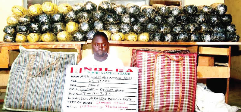 In Kogi, the NDLEA officers were also said to have arrested Ahmad Umar, 18, with 46.4kgs cannabis at a check point in Kabba, while Jamilu Zakari, 32, was nabbed at Kofar Idi, Kandahar, Bauchi town, Bauchi State with 125 blocks of the same substance that weighed 146kgs. At least, 542.3kgs of cannabis were recovered from a suspect, Festus Egeogoli, 32, when his base at Jakpa Road, Warri, Delta State was raided by the NDLEA operatives on Wednesday, November 29, while 125.9kgs of the same substance were also seized from a store in the same area.