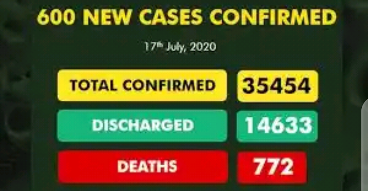 The Nigeria Center for Disease Control (NDDC) has confirmed 600 new Covid-19 cases in the country, bringing the total to 35,454.