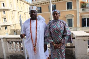 Welcoming His Majesty, Mrs Gwendy OMIJEH commended Kabiyesi Olota for the diplomatic visit, and for the efforts in promoting culture and traditions. She described the tour “thoughtful”, as it will further integrate subjects living in Rome with their homeland.