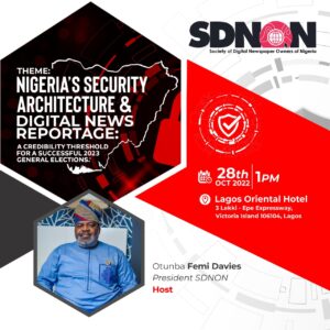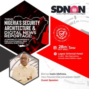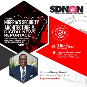 The former governor of Ogun State, Otunba Gbenga Daniel, as the keynote speaker at the event would be addressing the theme ‘Nigeria’s Security Architecture And Digital News Reportage – A Credibility Threshold For A Successful 2023 General Elections’, while the vice presidential candidate of the New Nigeria People Party (NNPP), Bishop Isaac Idahosa, will be the guest speaker.