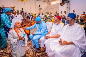 Governor Kayode Fayemi attended the wedding ceremony of H.E. Ayodele Fayose’s son, Oluwanigba Fayose, in Lagos. Also in attendance were H.E Engr. Segun Oni, former Governor of Ekiti State; H.E. Engr. Seyi Makinde of Oyo State; H.E Nyesom Wike of Rivers State, amongst others.