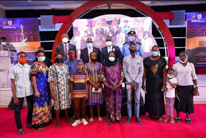 Governor of Lagos State, Mr @jidesanwoolu today presented a sum of N10m to the wives of Police Officers killed during the hijacked #EndSARS protests that turned violent in Lagos.