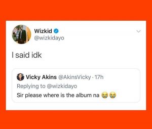 Wizkid answering the fan’s tweet went impolite state, “I said Idk” which implies, I said In don’t have a clue, which is very inconsiderate.