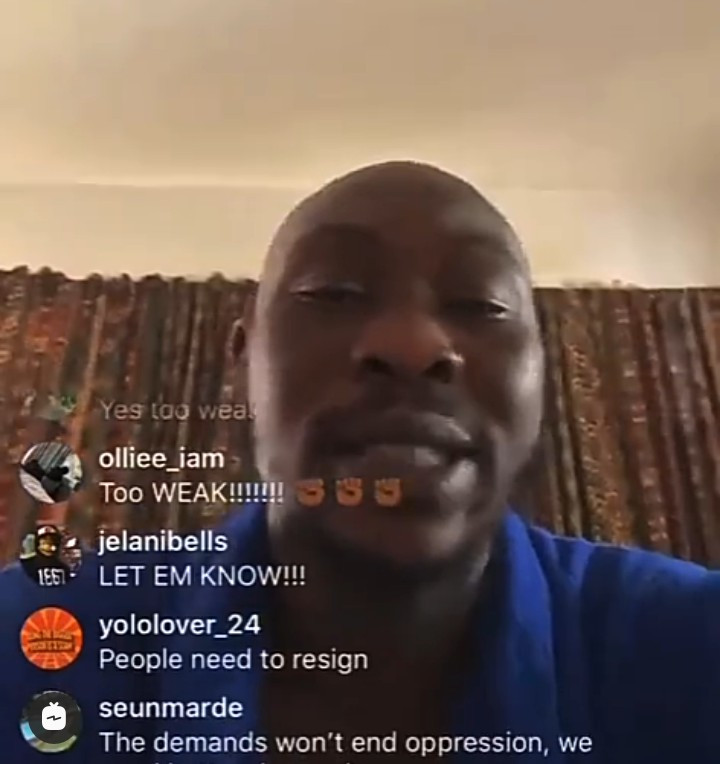 He stated that the demands made by Nigerian youths in the #5for5 list of demands is “too weak” which is why he’s reluctant to get involved in the current protest.
