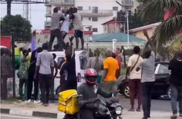 In a video posted on social media by influencer on the X platform, @Mbahdeyforyou, the young man is seen hanging from a rope which has been suspended from a bridge while he is standing on a white bus.