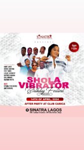 Vibrant Juju sensation, Mrs Olushola Taiwo known “Shola Vibrator” is celebrating her birthday this year in style. Shola who is presently Vice Chairman of the Association of Juju Musicians of Nigeria, Lagos state chapter will be embarking on a global tour with her band.