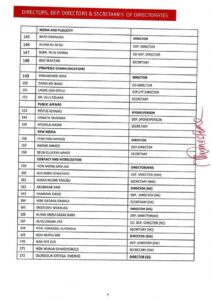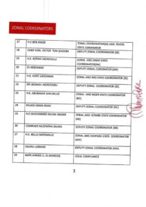 In the latest list released by the Presidential Campaign Council Secretary, James Faleke, in Abuja on Friday night, Plateau State Governor, Simon Lalong, retained his position as Director-General just as Deputy Director-General (Operations), Adams Oshiomhole, and Director of Media and Publicity, Bayo Onanuga.