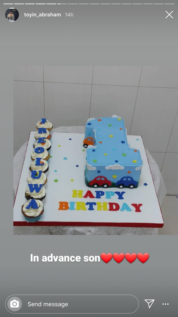 - Well, it didn’t end there, Toyin Abraham even had cakes to celebrate her first day of childhood and underneath you can see screenshots from her Instagram stories.