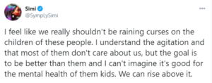 Simi thinks that raining curses on them wouldn’t be good for their mental health.